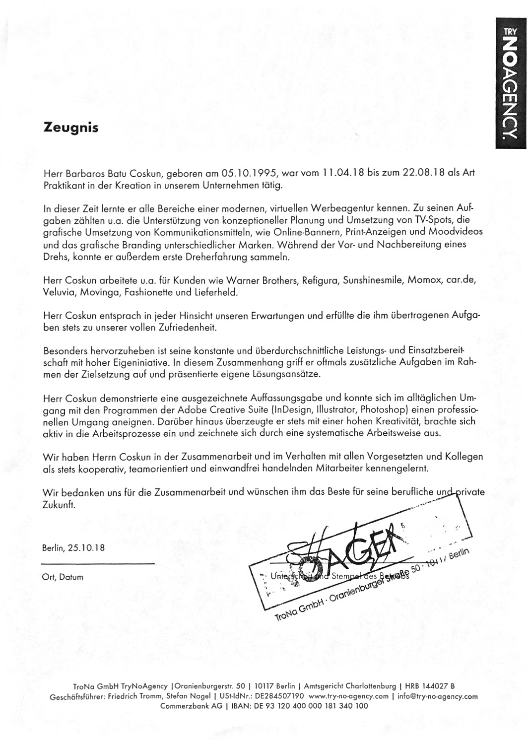 - Praktikumszeugnis "TRY NO AGENCY" 2018 -