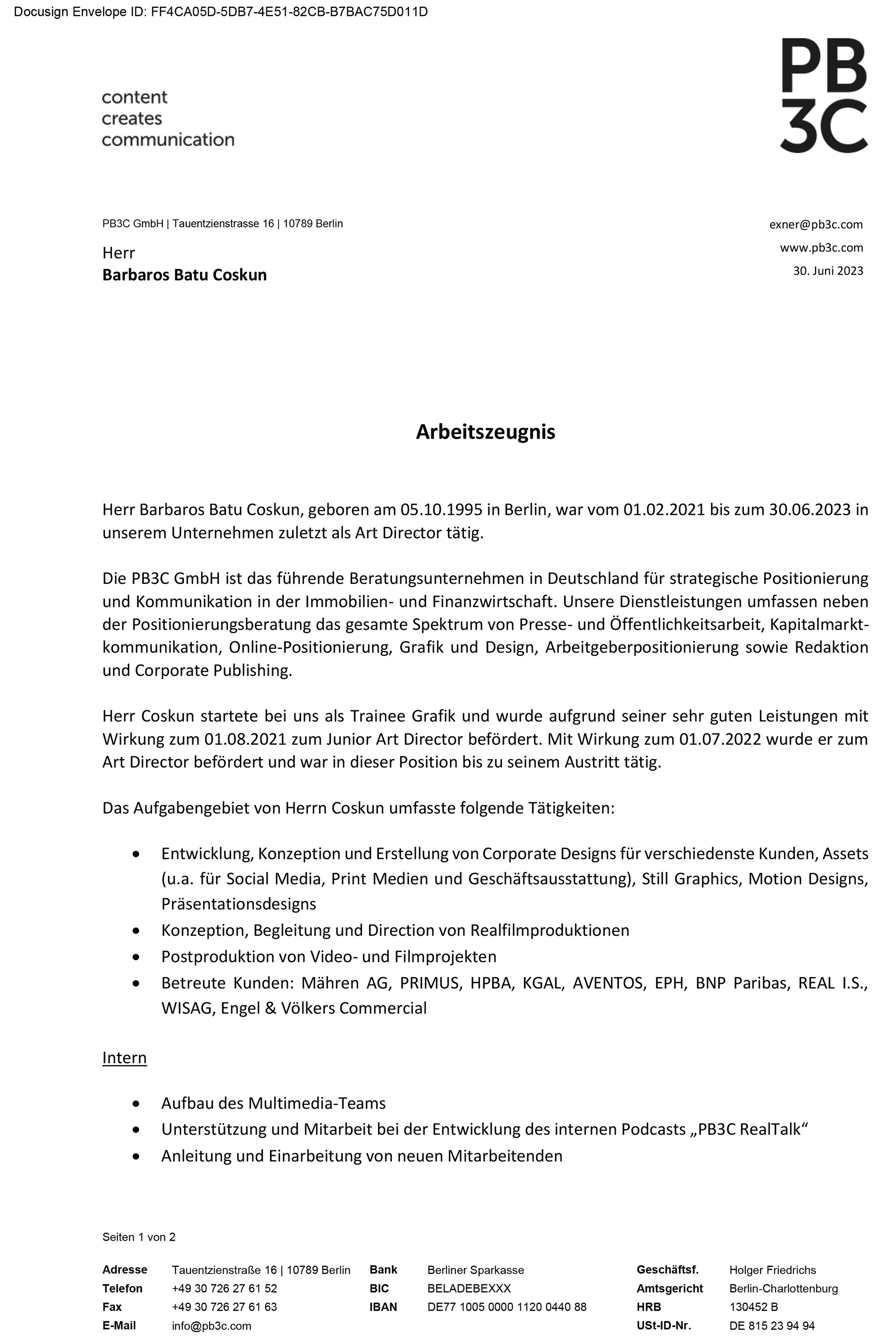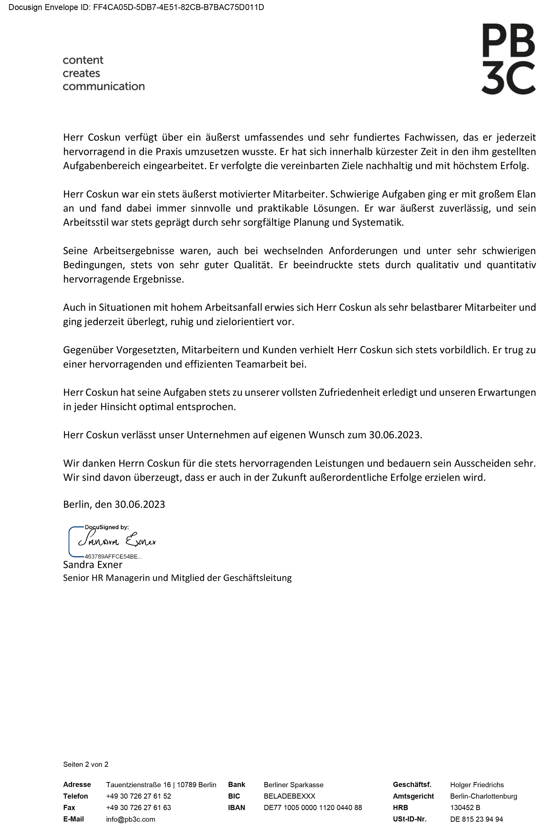- Arbeitszeugnis "PB3C GmbH" 2021 - 2023 -